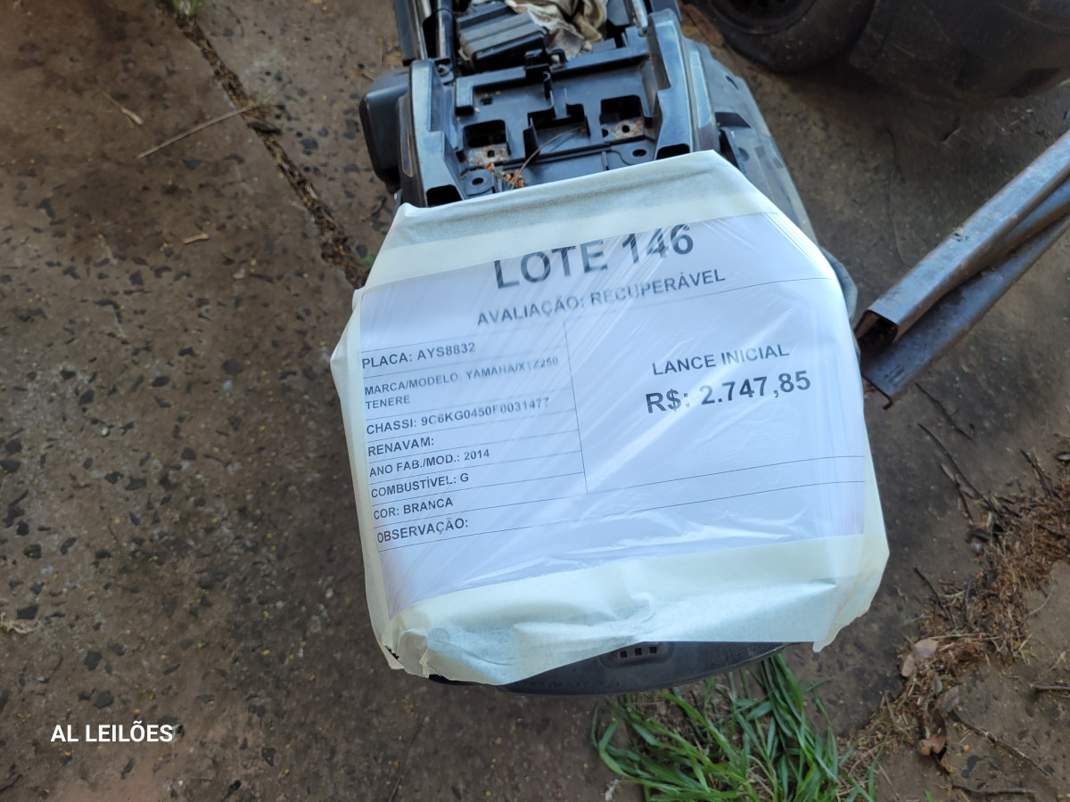 Lote 146 - L146) AYS8832 YAMAHA/XTZ250 TENERE 2BPM