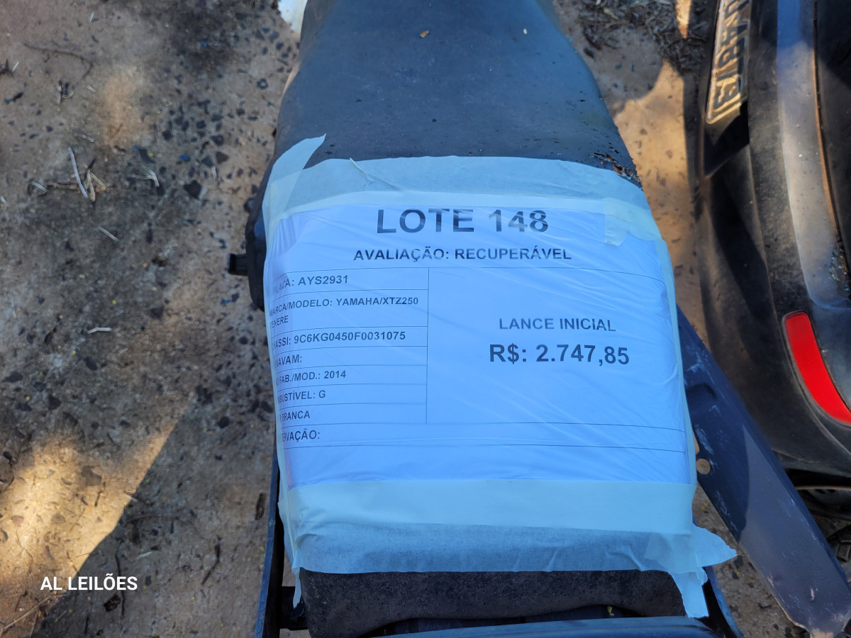 Lote 148 - L148) AYS2931 YAMAHA/XTZ250 TENERE 2BPM
